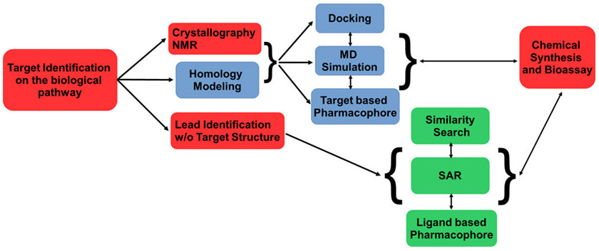 计算机辅助药物设计(computer aided drug design,CADD)是以计算机化学为基础,通过计算机的模拟、计算和预算药物与受体生物大分子之间的关系,设计和优化先导化合物的方法。计算机辅助药物设计实际上就是通过模拟和计算受体与配体的这种相互作用,进行先导化合物的优化与设计。基于结构的药物设计(SBDD)和基于配体的药物设计(LBDD)是现有的两种通用类型的计算机辅助药物设计方法。